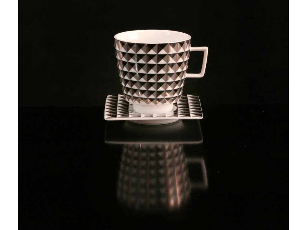 Nevšední čajová souprava Polygon zaujme především precizně zpracovaným dekorem mistrně klamajícím naše smysly. Dokonale hladké stěny jednotlivých součástí soupravy jsou po celém plášti dekorované originálním geometrickým vzorem, který vytváří dojem plastického povrchu. Čajová souprava je vyráběna také v čistě bílé variantě a podle přání zákazníka rovněž v kombinaci dekoru a čistě bílé. Čajovou soupravu vhodně doplňuje snídaňové šapó vyráběné v hladké variantě s celoplášťovým geometrickým dekorem nebo ve zcela jedinečném provedení reliéfního povrchu, na kterém zvláště vynikne čistota ušlechtilého bílého porcelánu. Podšálky čajové soupravy i snídaňového šapó jsou tvarově i rozměrově totožné, takže celý set je zajímavě variabilní. Do hry o výsledný design výrobku je tak zapojen i zákazník. Autorem návrhu je výtvarník Martin Přibík „Nic není jak se zdá. Vždy jsme přitahováni věcmi klamajícími naše smysly, které nedokážeme plně pochopit. Snahou bylo vytvořit plně funkční tvarově nijak komplikovanou nápojovou soupravu, kdy záměr jejího dekoru již od počátku směřoval k vytvoření optického klamu, který přitáhne naše oči, poté budeme o něm přemýšlet a nakonec se soupravy dotkneme a uvedeme vjemy na pravou míru. Celá idea vizuálu soupravy nepřejímá výtvarný projev a grafický styl, ale spíše myšlenku věhlasného nizozemského grafika Mauritse Eschera, kterou je také nápojová souprava Polygon inspirována.“ Martin Přibík, autor výtvarného návrhu
