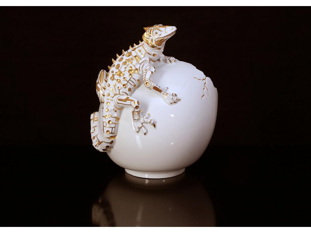 Související pojmy: kaviár, mísa, porcelánová mísa, karlovarský porcelán, český porcelán, porcelán, Atelier Lesov, mísa na kaviár, ještěr